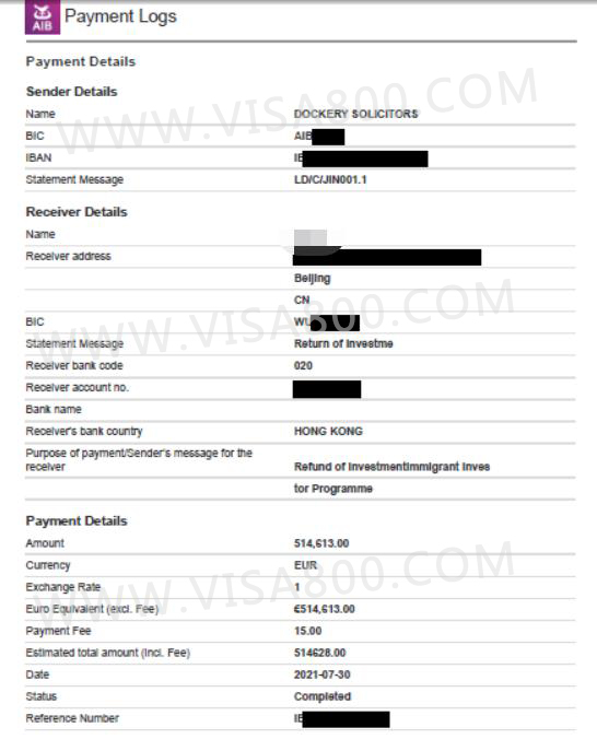 爱尔兰企业投资移民项目是先获批、再投资。如约拿到“原则性批复函”后,K女士也按要求支付了投资款。如今,投资期满,2021年8月,K女士收到了全额返款。
