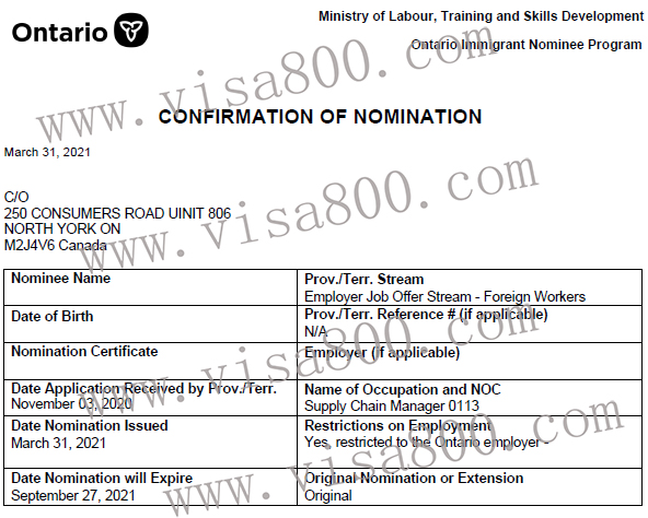 亨瑞集团再度迎来令人欢欣鼓舞的喜讯:客户H先生安省雇主担保项目申请获批,顺利通过!