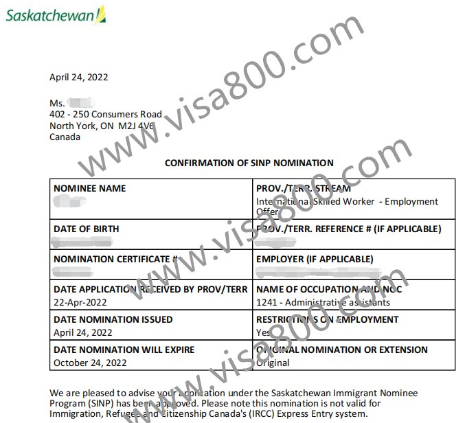 亨瑞集团再度迎来令人欢欣鼓舞的喜讯:客户L女士加拿大移民萨省雇主项目省提名申请获批,直接进入联邦申请阶段。