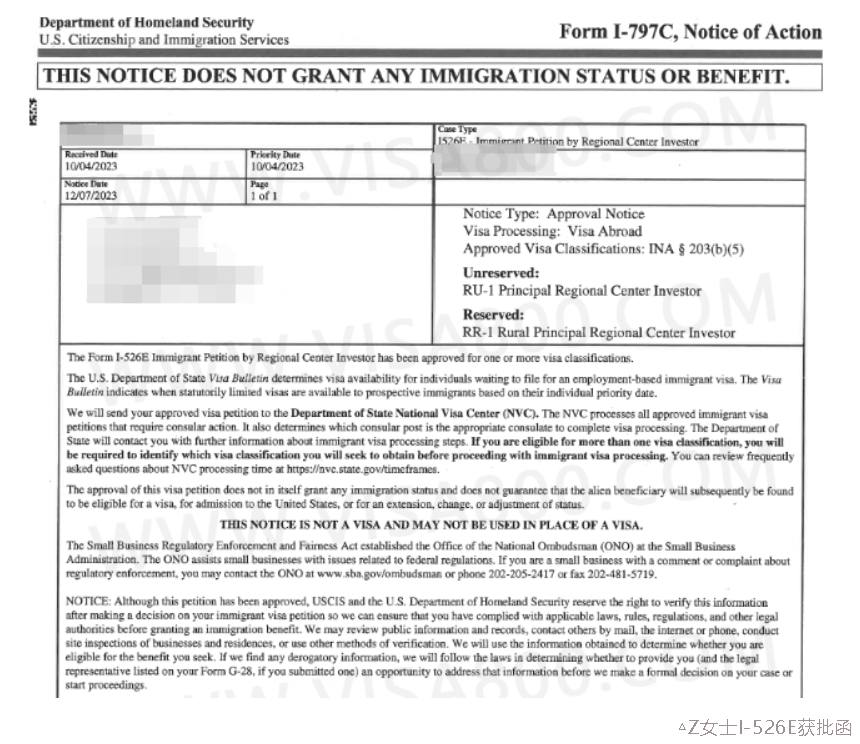短短三个月不到就成功获批I-526E,Z女士非常惊喜,对亨瑞赞不绝口,给予了非常高的肯定。