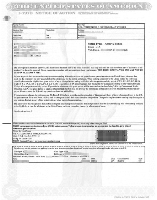协助客户整合公司现有资料,并在专业移民律师的建议下,补全有关公司架构、经营、管理职务的证据文件,客户很快获批三年的L1签证。后续很快帮客户预约了国内使馆面试,并为客户准备了全套面试材料和面试辅导,客户当场通过。