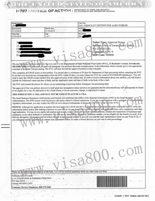 亨瑞移民传喜讯,在经过亨瑞公司的策划和努力下,EB-1A客户X先生于2018年1月8日递交常规申请,2018年1月30日顺利获得美国移民局I-140批准函。