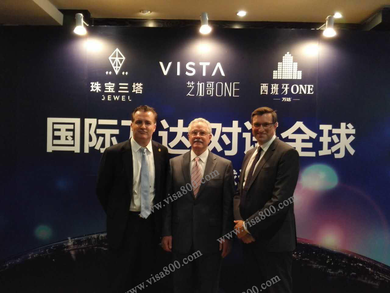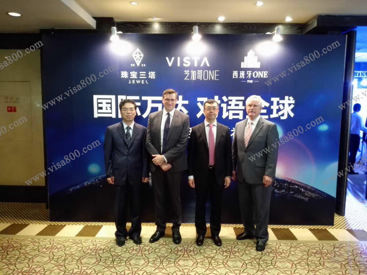 亨瑞集团总裁邹亨瑞先生(左一)和万达集团共襄海外房产市场