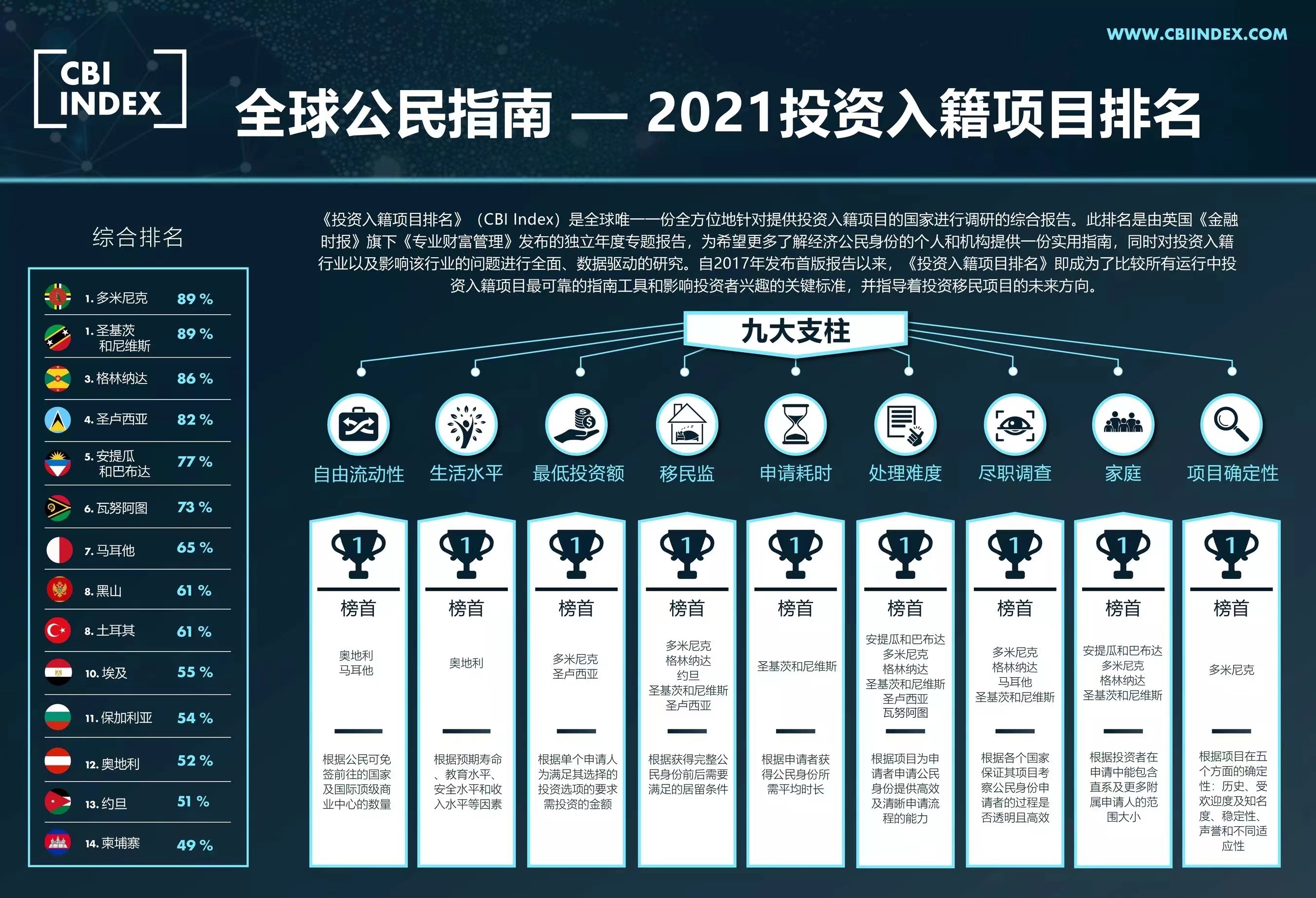 在2021年最新的《投资入籍项目排名》中,多米尼克连续五年证明了其投资移民项目的吸引力,位居全球最佳投资入藉项目首位。
