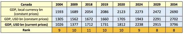 报告摘要中指出:“在吸引技术移民方面取得成功的两个西方经济体,加拿大和澳大利亚,应该会继续上升。”报告说,预计到2034年,加拿大将成为第八大经济体,澳大利亚将成为第13大经济体。