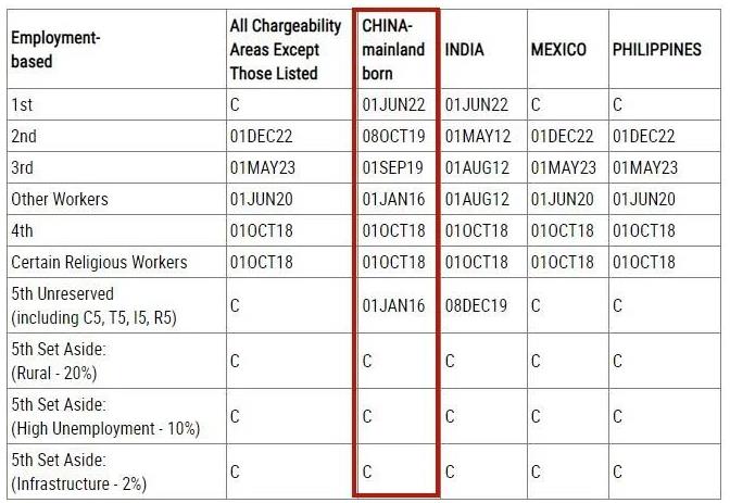 EB-3 (非技术劳工):2016年1月1日,原地踏步;