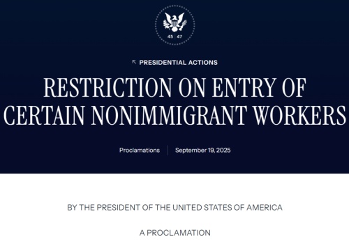 美国总统特朗普在当地时间2025年9月19日签署公告《限制某些移民工人入境(RESTRICTION ON ENTRY OF CERTAIN NONIMMIGRANT WORKERS)》。该公告提出:自2025年9月21日起,对持有H-1B签证入境美国的人员收取10万美元入境费用!