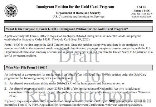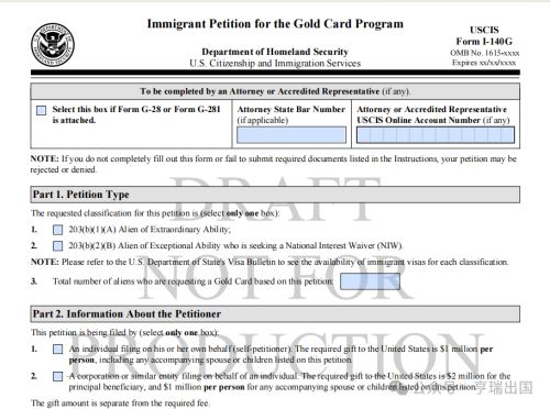现在特朗普金卡的申请表已经出炉,看来离正式上线要不远了。这次曝光的有金卡申请表I-140G表及其填写指南样子如下: