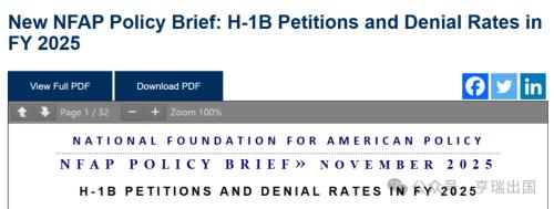 美国国家政策基金会 (National Foundationfor American Policy,NFAP) 11月17日发布政策简报《2025财年H-1B申请及拒签率》,报告深度分析了 2025 财年 H-1B 签证的最新格局。