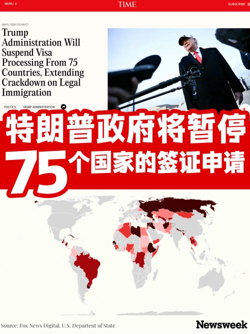2026年1月14日,特朗普政府宣布了一项重大的移民政策变动:无限期暂停受理来自75个国家的移民签证申请。这一政策定于2026年1月21日正式生效。