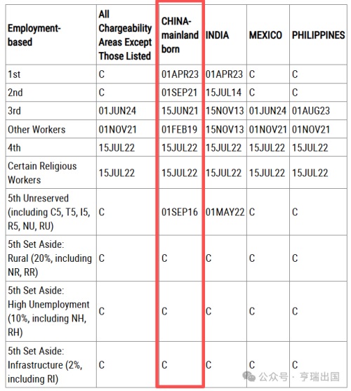 EB-5预留签证类别:无排期。