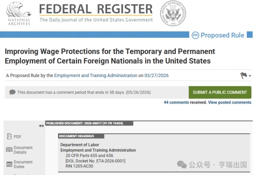 该提案现已开启为期60天的公众评议期,截至 2026年5月26日。公众可通过 Regulations.gov 提交书面反馈。若最终通过,该规定预计将对 2027财年的抽签及申请产生深远影响。