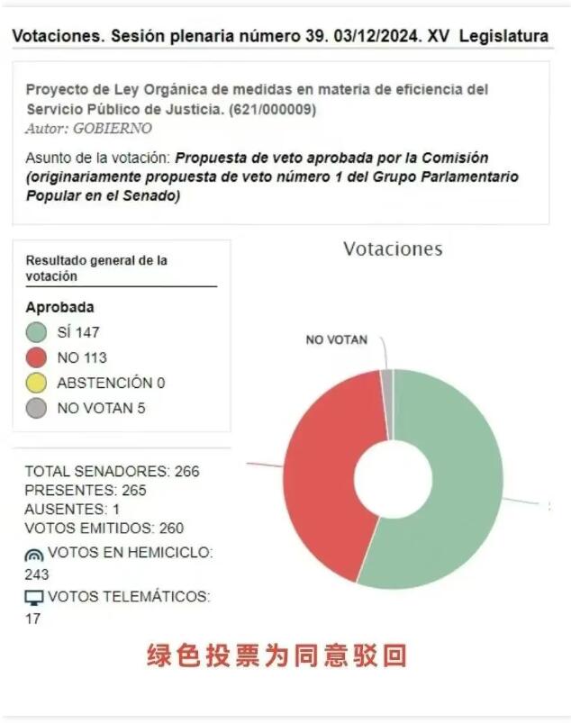 11月14日,西班牙国会通过了《司法效率法案》,其中包含“取消黄金签证”的条例,这一动向迅速引发了广泛关注。12月2日,以人民党为主导的参议院正式否决了该法案。根据西班牙的立法程序,该法案现已退回国会等待再次表决。