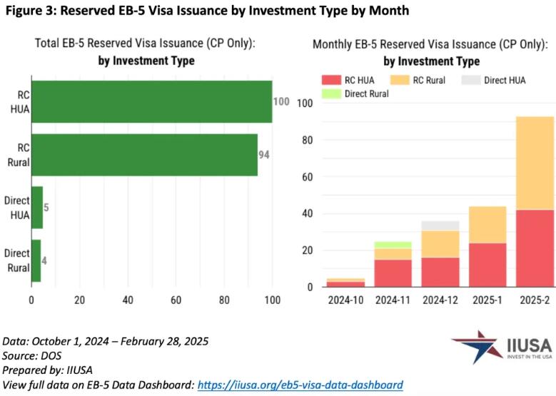 根据报告,2025财年前五个月,仅签发了98个乡村地区预留签证和105个高失业地区预留签证,共计203张。(未包含通过USCIS身份调整申请的EB-5签证使用情况。)