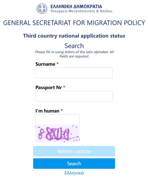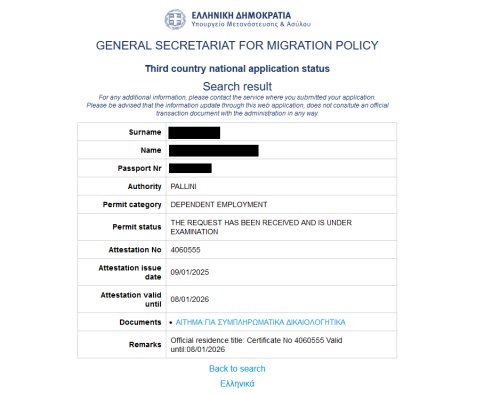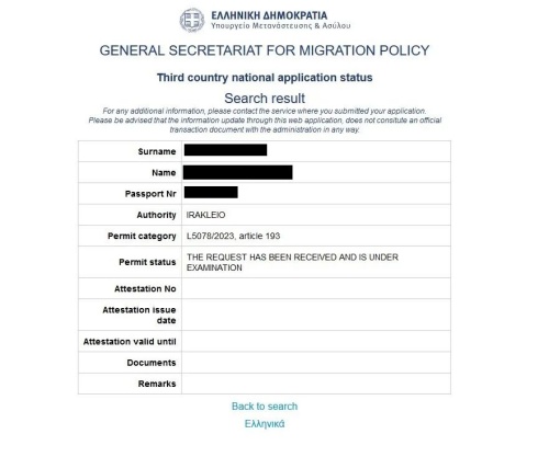 官方提供了一个可查询入境请求状态的链接https://pf.emigrants.ypes.gr,让客户自行查询结果: