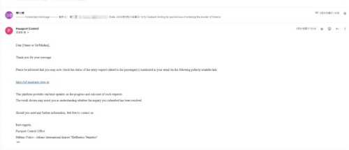 希腊海关不再给到相关的邮件回答,只使用模板化的自动回复让客户自己在查询链接查询状态是否和模板一致后自行确定是否登机。