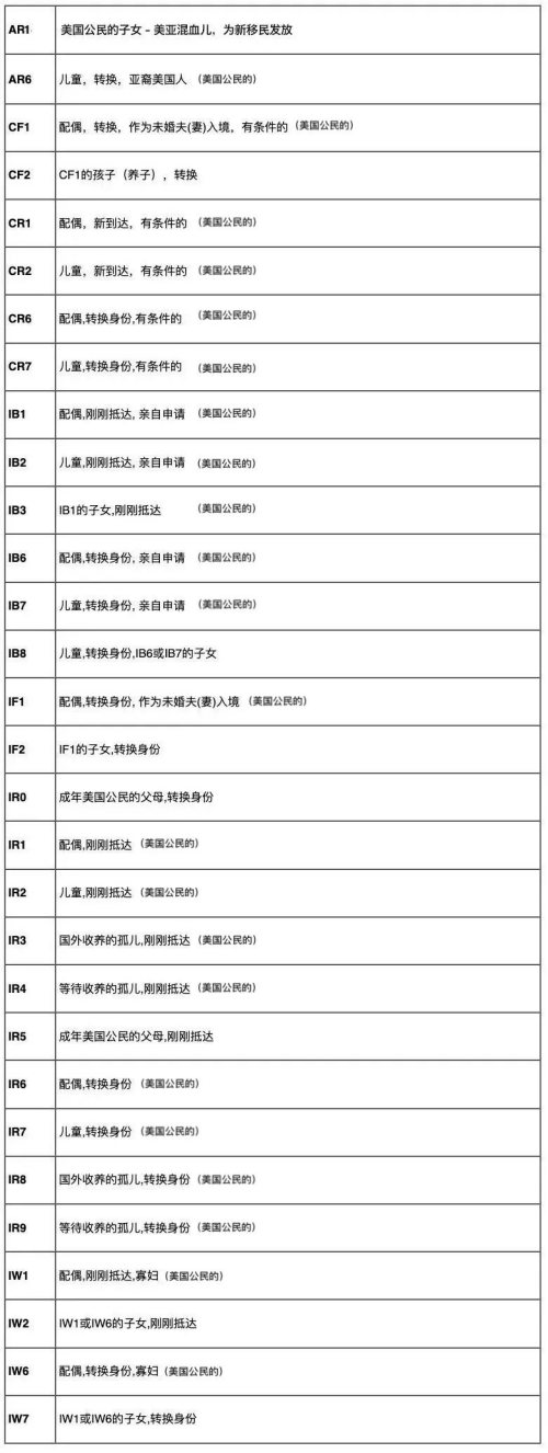 通过对比这一代码编号与相应的参考对照表,我们可以较为准确地了解持卡人是以何种方式获得的绿卡。因此,从绿卡上的这一代码编号中,我们能够大致推测出持有人进入美国的途径。