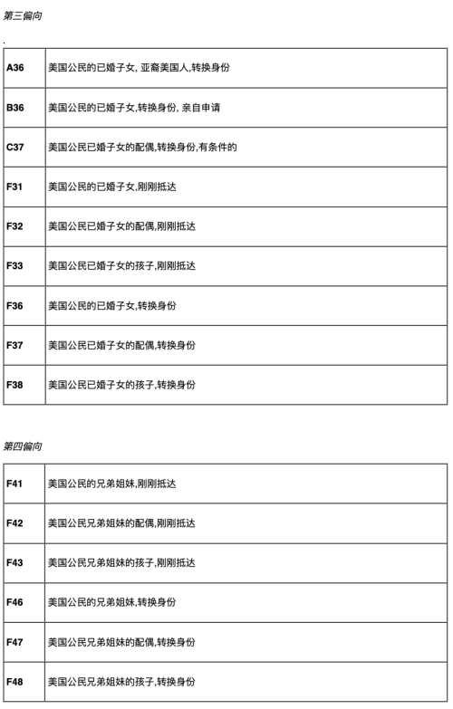 该代码编号设计极为详尽,由三个字符构成,常见的结构模式包括一个字母后接两个数字,或两个字母后接一个数字。这些字符承载着特定的信息含义。具体而言,字母部分通常作为分类的简写或排序标识。而数字部分则蕴含了三种不同层面的信息:代表优先类别;区分主申请人、配偶或子女;揭示绿卡获取途径,即是通过境外领事程序还是境内身份调整方式获得。这两位数字的具体含义需依据其在代码中的位置来解析。