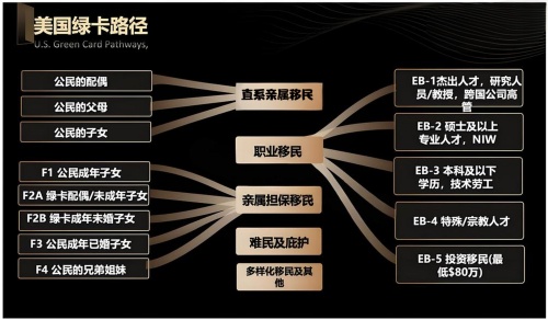 多种多样美国身份路径如图所示:
