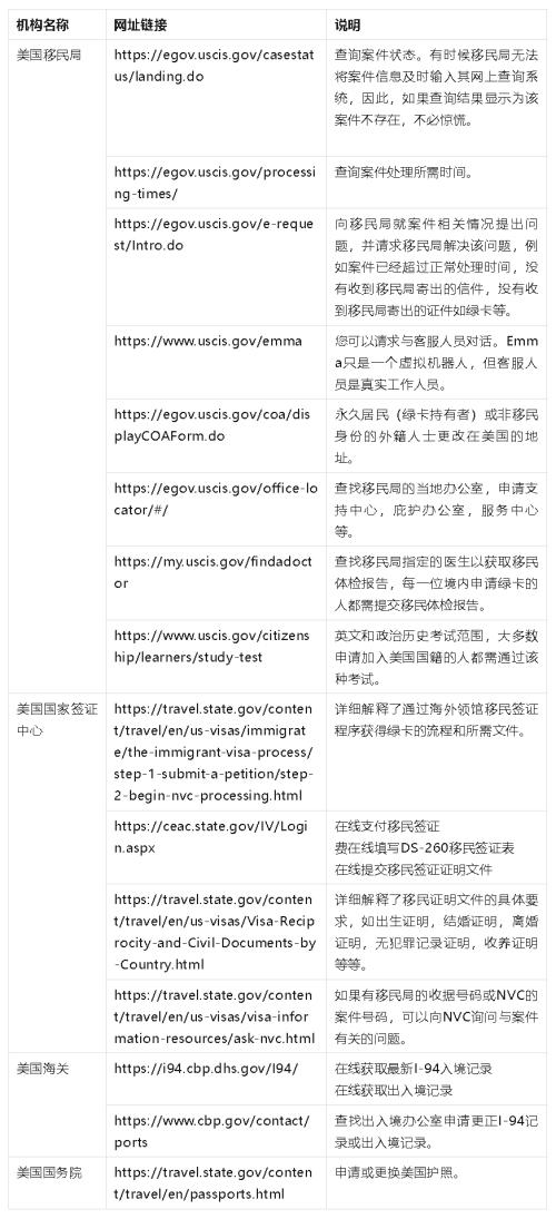 美国移民政府部门相关链接