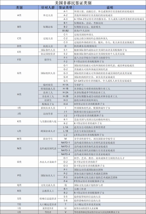 实际上,真正适合中国申请人因个人原因赴美的,主要有以下几大签证类别:
