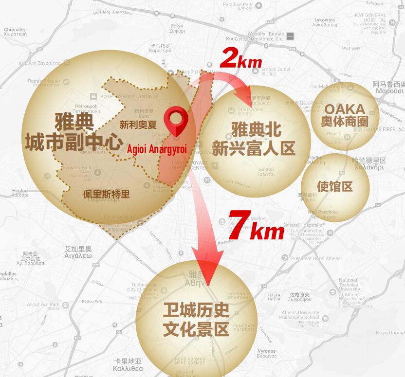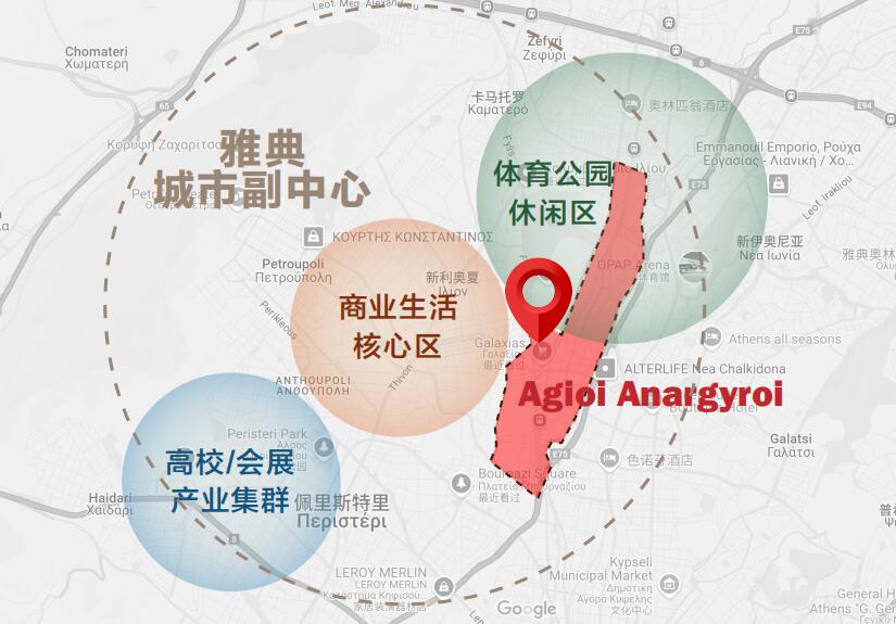雅典西城市副中心,由 Agioi Anargiro、佩里斯特里、新利奥夏共同组成,承载着雅典商业、居住、教育等城市功能,疏解市中心人口压力。该城区交通便利,可速达市中心和 OAKA 奥体商圈,房源和城建比市中心新,游客少,因此大量年轻人活跃于此。是城市经济与生活的新热点,更是市中心和雅典北 CBD 白领租客的理想居住地。被赋予无限期待!