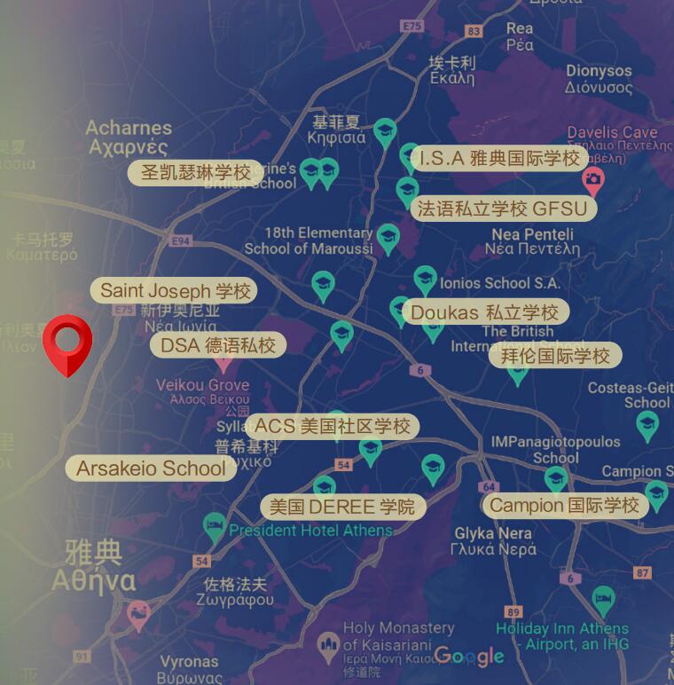 项目出发,30 分钟车程内即可抵达雅典北部的 5 所知名国际学校:圣凯瑟琳国际学校、ACS 美国社区学校、拜伦国际学校、ISA 雅典国际学校、坎培恩国际学校。此外,周边还汇聚了雅典学院、杜卡斯、柏拉图、DSA 等众多私立学校,轻松享受英式、美式教育体系,成长先人一步。