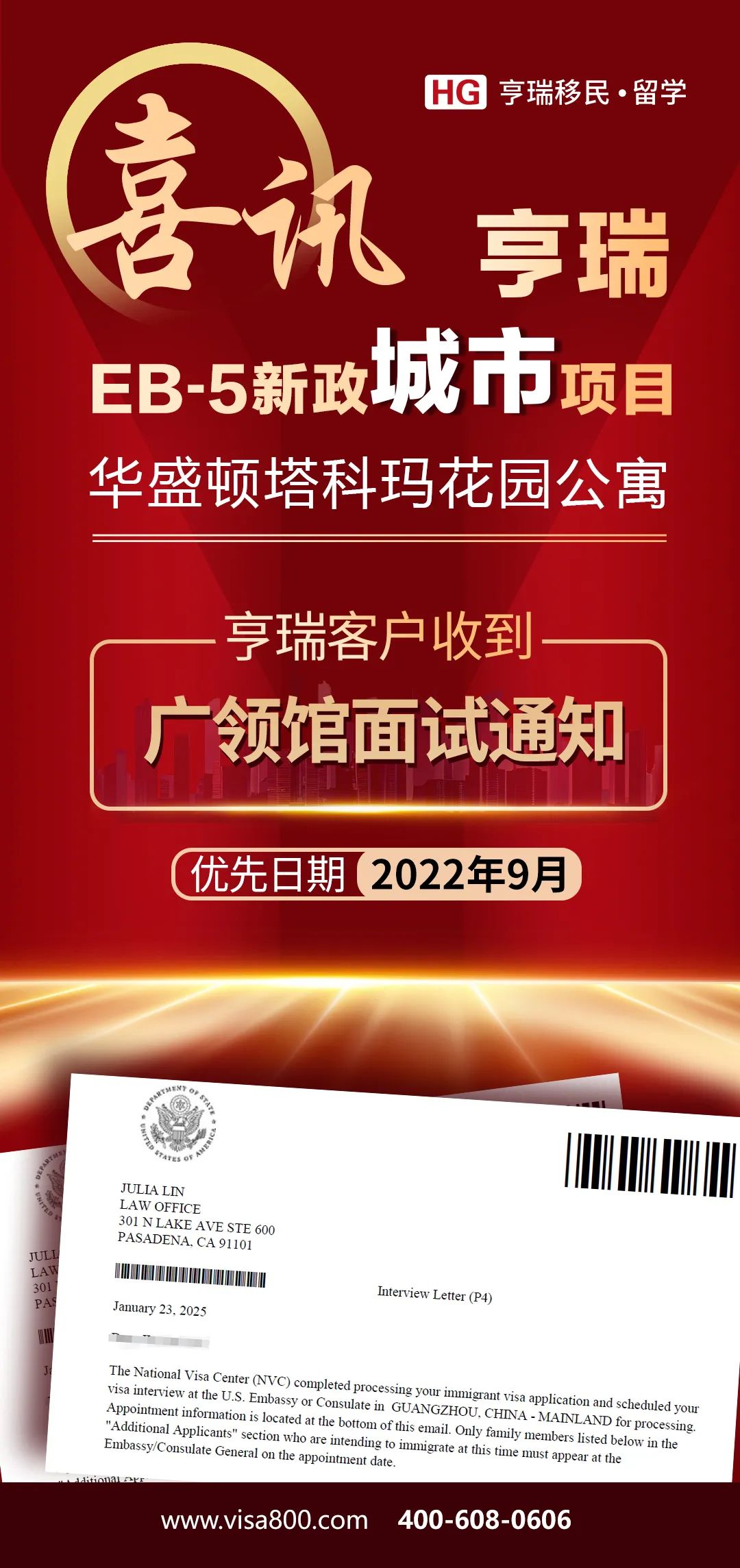 近期,亨瑞迎来一大波EB-5新政面试通知!包括: