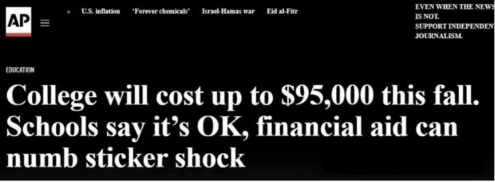 也就是说,大学学费跑赢通胀5倍有余,甚至在过去10年涨幅陡峭上探。