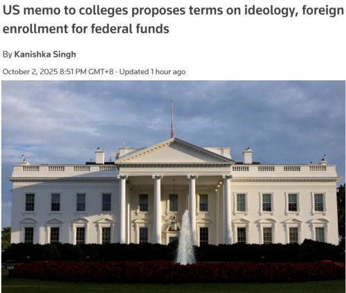 10月1日,特朗普政府向部分顶级大学发布了备忘录,提出了一项名为“学术卓越契约”的新提案。
