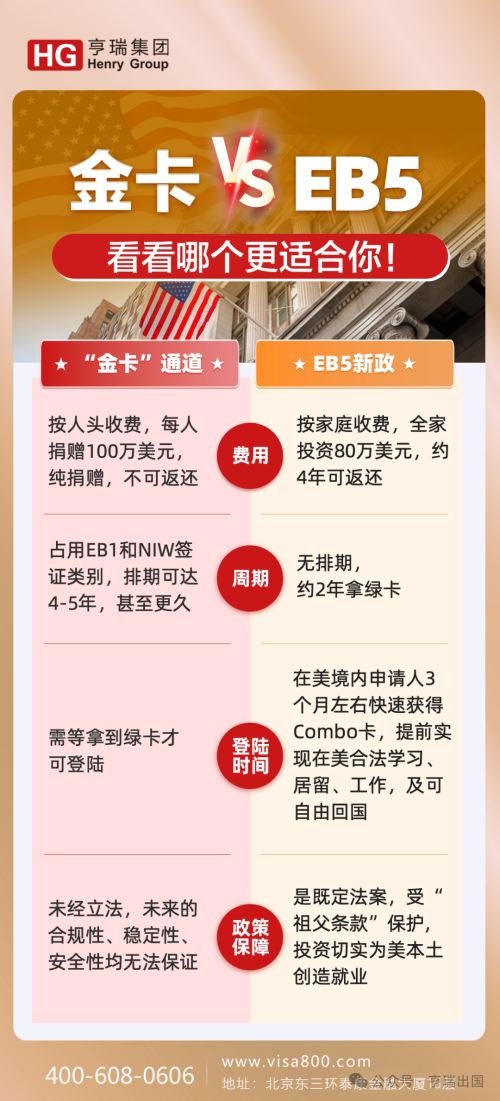 从对比可以看出,从法律稳定性、资金成本、申请流程等方面来看,金卡无疑不占优势,建议想移民美国的朋友优先考虑EB-5投资移民新政。
