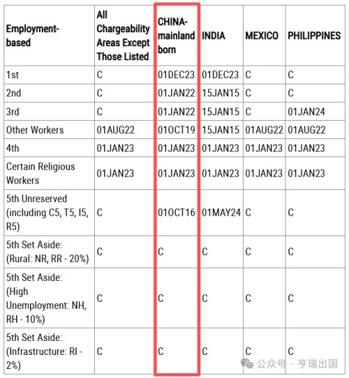 EB-5预留签证类别:无排期。