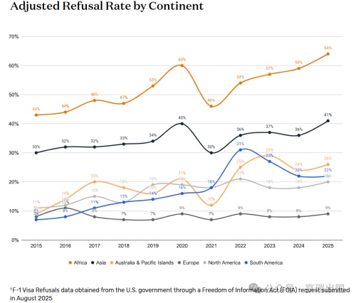 美国全球F-1拒签率持续攀升