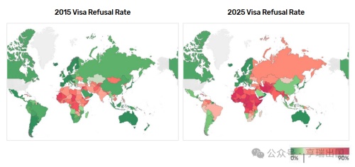 2025年的数据证实,这种拒签规模不仅是拒签数量上的激增,更在地域分布上呈现出显著的不平衡性。“高拒签层”已经形成,非洲和南亚等全球靠南方的国家承受了不成比例的拒签压力,中国等传统核心市场的裁决环境也正在经历前所未有的结构性收紧 。