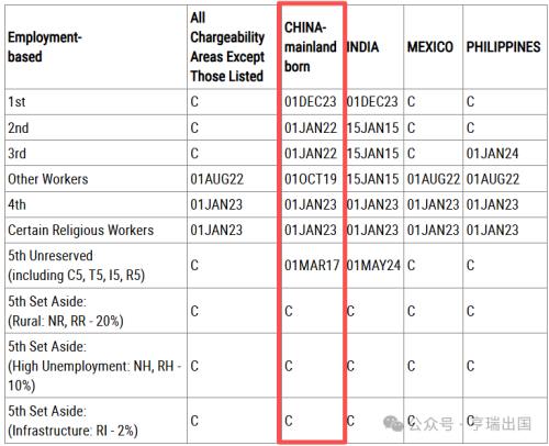 EB-5预留签证类别:无排期。