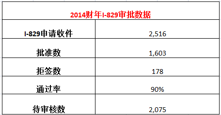 同时,I-526全年通过率达到80%,而I-829通过率高达90%,这说明美国移民局审批的趋势是在“严审I-526,放宽I-829”,因此客户对于转正式绿卡应该更加有信心。值得一提的是,从第四季度(2014年7月1日至2014年9月30日)数据看,I-526通过率达到了惊人的93.78%,同比往年同期数据,这一数字已相当可观;I-829通过率也达到93%以上,令广大投资人颇为欣喜。