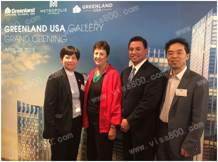 左起:绿地美国集团总裁张伊琲,洛杉矶商业协会主席Carol Schartz,洛杉矶市议员Jose Huizar,亨瑞集团总裁Dr. Henry Zou