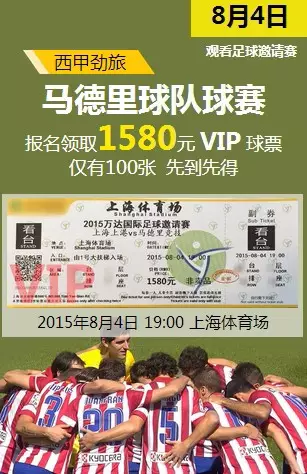 现场亲临的亨瑞客户将有机会获得马德里竞技赛事VIP门票,价值1580元的VIP门票仅有100张,先到先得哦!