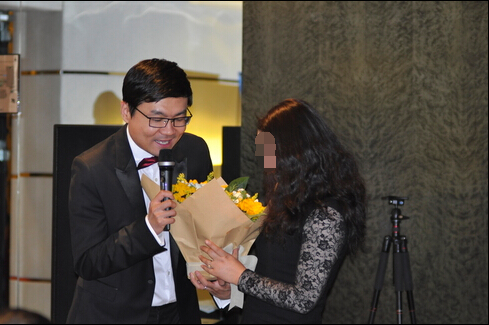 在最后的晚宴环节,老客户们在主持人储广伟先生的邀请下纷纷上台分享自己在美国的安家经验。亨瑞集团为积极参加互动的客户们献上鲜花,鲜花映衬着一张张欢乐的笑脸,交流的畅快流露在眉宇之间。