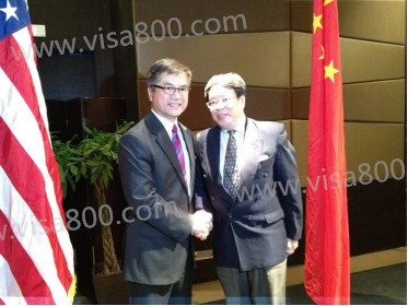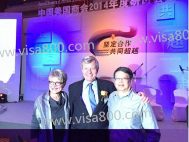 与美国前任驻华大使骆家辉在离任晚宴上合影