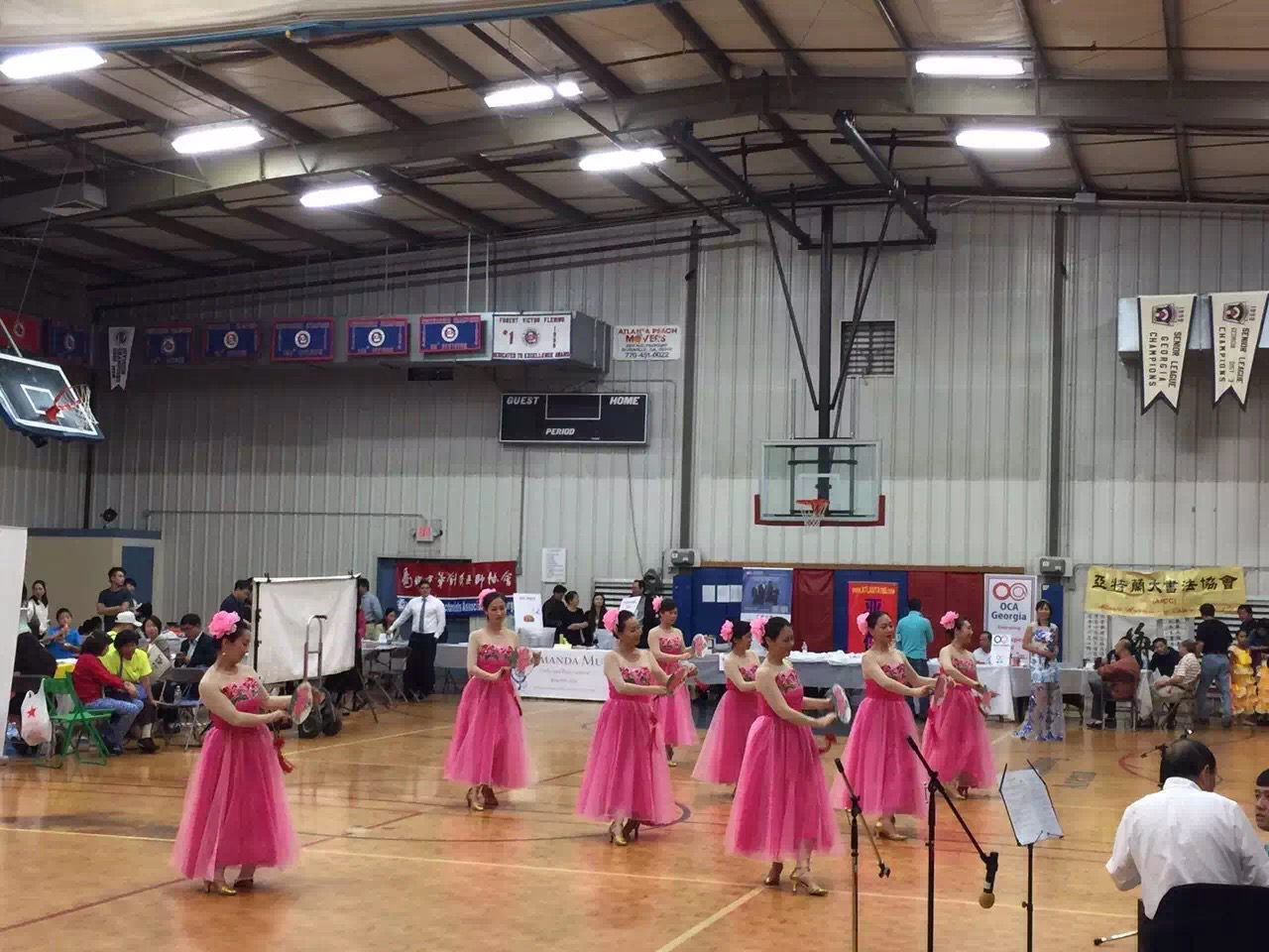 王若祎(左一)、李丽萍(左二)、亚特兰大中国商会会长李雁翔(右一) 合影