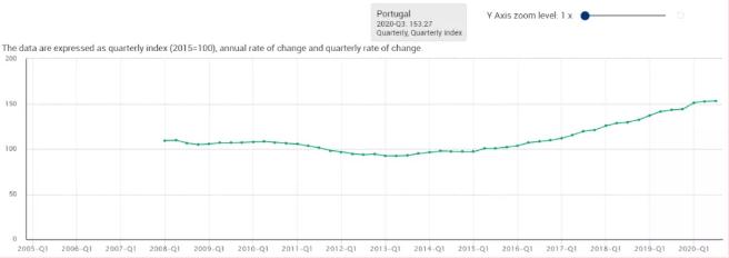 据欧盟统计局的数据显示,尽管去年受疫情影响,葡萄牙的房价依旧稳步上升,截至去年第三季度,葡萄牙房价走势创近十年来新高。
