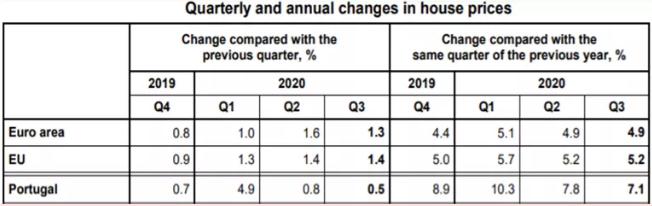 不止于此,相较于去年同期,葡萄牙2020年前三季度的房价涨幅分比为10.3%、7.8%和7.1%,远超欧盟同期房价涨幅。