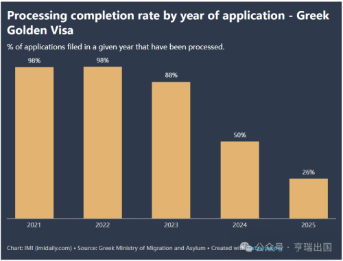 数据显示,希腊已完成2023年申请的88%,2024 年申请的50%和2025年申请的26%,这些数据凸显了该国通过分散办事处处理申请的举措已经缩短了此前长达18个月的处理时间。