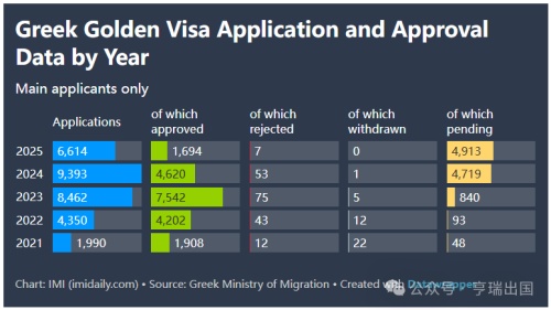 希腊黄金签证2021-2025年度申请数与获批数