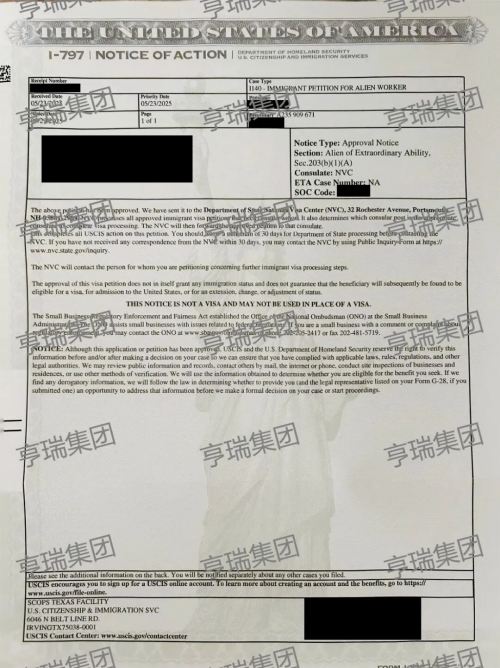 2025年5月,M先生的申请材料正式递交至美国移民局。后收到移民局的补料通知(RFE),亨瑞团队第一时间拆解补料要点,与M先生对接材料补充,同时精准提交加急审理申请。最终,从补料递交到获批仅耗时14个工作日。