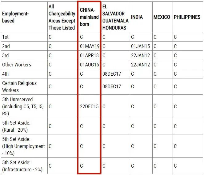 EB-1,对中国大陆地区出生申请人已取消了排期;