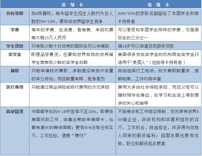 现今,美国对中国留学签证的收紧已成事实。亨瑞建议,有意向送子女去美国留学的家长在各项条件符合的情况下,不妨提前送孩子一张美国绿卡。