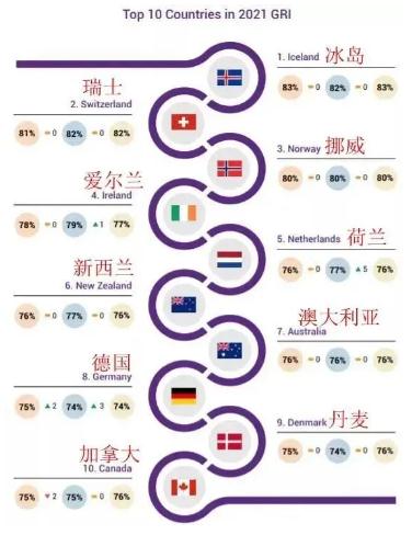 2021年,爱尔兰在全球最适合养老国家中位列第4位!前10个国家依次分别是:冰岛、瑞士、挪威、爱尔兰、荷兰、新西兰、澳大利亚、德国、丹麦、加拿大。